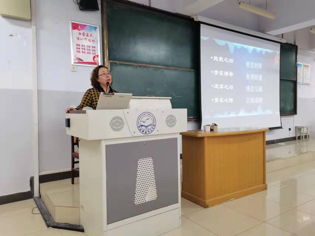 齐老师首先以提问的形式,启发即将加入教师队伍的同学们,要从教学实践阶段开始,走进一线课堂,磨炼自己的基本功,博观而约取,厚积而薄发,要不断提升自己的专业素养和教学能力。之后,齐老师根据亲身教学经验与真实案例,就师范专业生如何提高专业能力,在听、说、读、写、研五个方面展开了专业细致的论述。对于“听”,齐老师指出同学们应该多听课:首先,多听常态课,注重导入环节,课堂设计以及教学用语,从员工与教师最紧密的日常课中练自己的基本功;其次,多听优质课,从优质课中提取精华,寻找捷径。对于“说”,齐老师打破了同学们对说课的固有看法,提出要丰富说课对象,拓宽说课的内容。对于“读”,齐老师引用了“读书百遍其义自见”,“读中悟,悟中行”这两句话,让同学们在日后教学时,不仅要读理论书籍来补充理论知识,读课本形成自己的体系,更要多读其他老师的教案和自己的教案来汲取专业知识、反思教学来提升自我。对于“写”,齐老师指出要多写教学反思,将即时反思和深度反思相结合,促进思考向纵深发展,促进教师教育理论学习以及教师经验积累和提升。对于“研”,齐老师提出要多参与教研以及科研活动,从中集思广益,积累经验,对教学进行深度探讨,拓宽教师备课思路从而得到更好的教学效果。