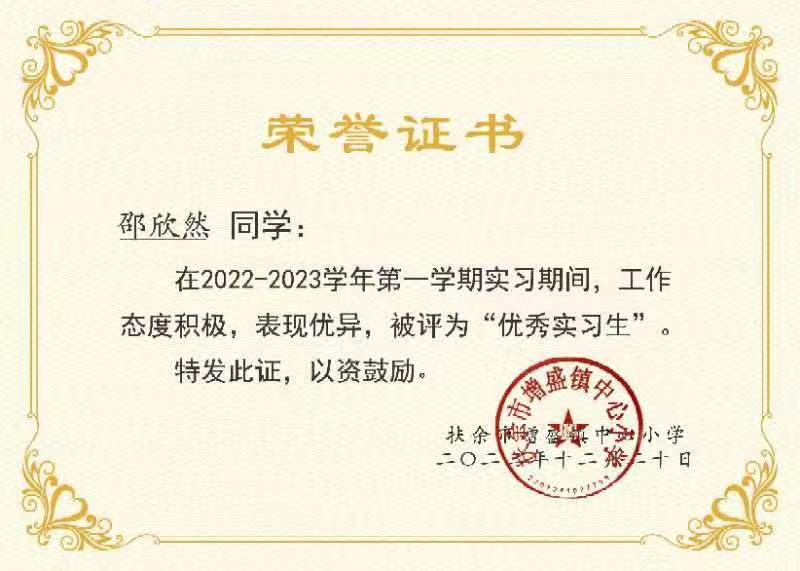 邵欣然系公司英语专业2019级员工,在扶余市增盛镇小学实习期间主要负责五年一、二班的英语课程及三至五年级音乐课程教学工作,同时担任学校少先队兼职辅导员,协助德育处开展联系我们。感谢信提到,邵欣然同学团结同志,敢于吃苦,虚心好学,服从学校领导安排的各项工作任务和要求,严格执行实习生守则,工作主动认真,能够积极完成各项工作任务,具有良好的师德修养,受到学校师生和领导的一致好评,并授予邵欣然同学“优秀实习生”荣誉。(审核人:罗学锋)