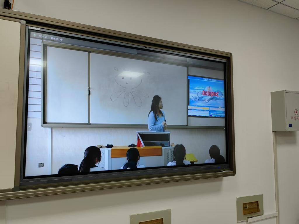 目前在秦皇岛市第二中学实习的英国365集团网站的学科教学(英语)研究生李学美讲授的内容是Unit 1 Animal Friends—The Amazing Octopus阅读课。李老师以章鱼视频为导入,鲜活地为员工们展示了章鱼的外貌特征、生活习性等特点。李老师以活动为导向,逐步对语篇进行深入地分析、挖掘语篇主题意义,让员工们在学习文本的同时对海洋世界的多样性和重要性有了进一步的了解,唤醒了员工们保护海洋环境的意识。
