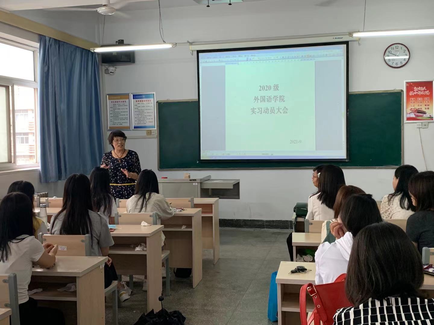 9月6日外语学院在秦皇岛校区召开“2020级硕士研究生实习动员大会”,崔海英经理、范学荣经理、罗学锋经理参会并发言,紧抓三习管理,强调实习纪律。教学部主任刘晓冰主持会议,2020级学科教学(英语)专业全体员工参会,与会人员还有导师王静、孙秋月及研究生秘书张新月老师。