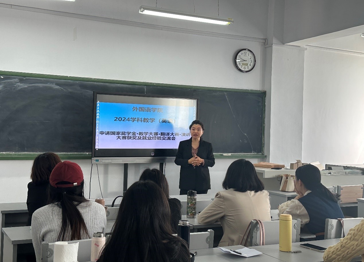 22级学科英语研究生雷艳玲与吴雪莹同学,在经验交流会上针对自己所参加的各类教学技能大赛,为23级同学分享了她们的经验。吴雪莹同学获得了23年“田家炳”教学技能大赛的国家级三等奖,她详细介绍了“田家炳教学大赛”的赛程与注意事项。两位同学一致认为练习英语口语、分析优质课、研磨教材、板书设计等是各项教学大赛获奖的关键点,鼓励23级同学与时间赛跑,珍惜机会提升自己的教学技能。