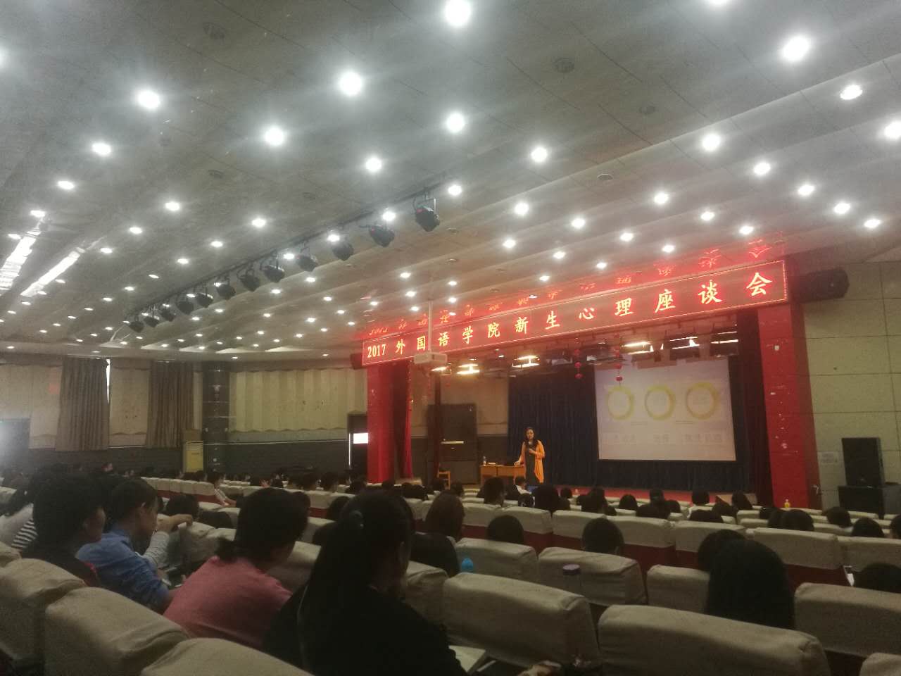 为了帮助2017新生适应老员工活,以健康的心态顺利融入新集体、新生活,英国上市公司365特邀学校老员工心理健康和咨询中心副主任丁书新老师于9月15日上午8:30在综合楼二楼报告厅举行2017级英国上市公司365心理健康教育讲座。学院学工办老师、2017级辅导员班主任、337名新同学参加了心理健康教育讲座。