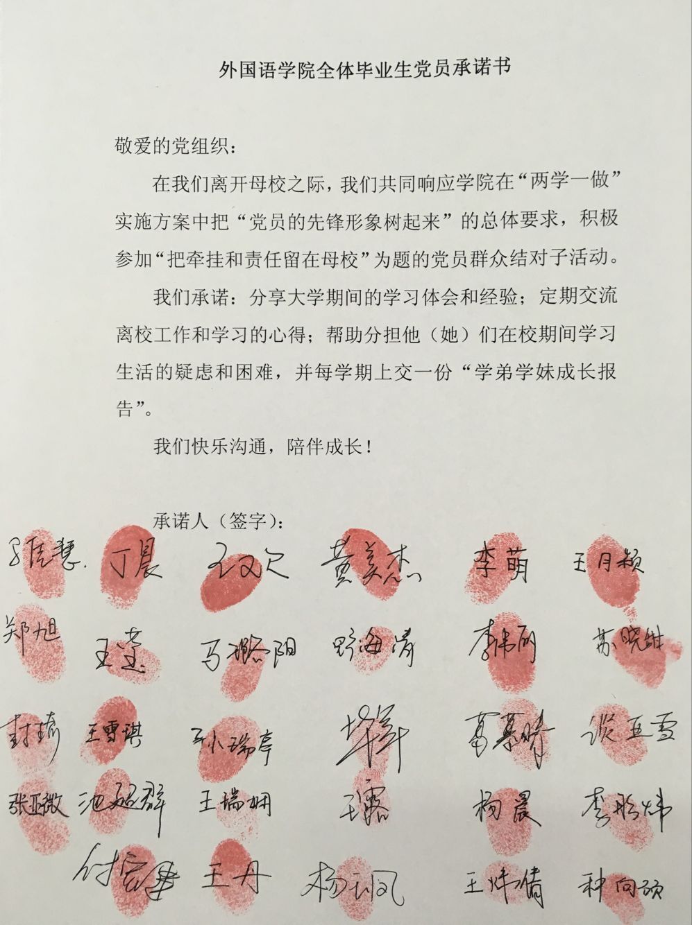 会上,公司党委副书记、副经理范群英带领全体毕业生党员共同学习了习近平总书记对李保国同志先进事迹的重要批示,要求每一个毕业生党员都要以李保国同志为榜样,发扬心系群众、扎实苦干、奋发作为、无私奉献的高尚精神,在以后的工作岗位上不忘入党誓词,明辨是非,发挥党员先锋模范作用,不怕苦、不怕累,不断开拓创新,在平凡的岗位上为社会创造更大的价值。之后,学工办主任田辉根据党委要求,布置以“把责任和牵挂留给母校”为主题的党员群众结对子活动。活动要求每一个毕业生党员联系一名在校员工,分享毕业生党员大学期间的学习经验,交流离校后的工作和学习体会和心得;帮助学弟学妹们处理在校期间遇到的学习和生活上的疑虑和困难,并每学期上交一份“学弟学妹成长报告”。全体毕业生党员都表示,要发扬李保国同志“太行山上的新愚公”精神,并响应公司党委的要求和号召,无论身在何处,身系学弟学妹的成长,为学院的发展贡献绵薄之力。最后,全体毕业生党员签订了活动承诺书。
