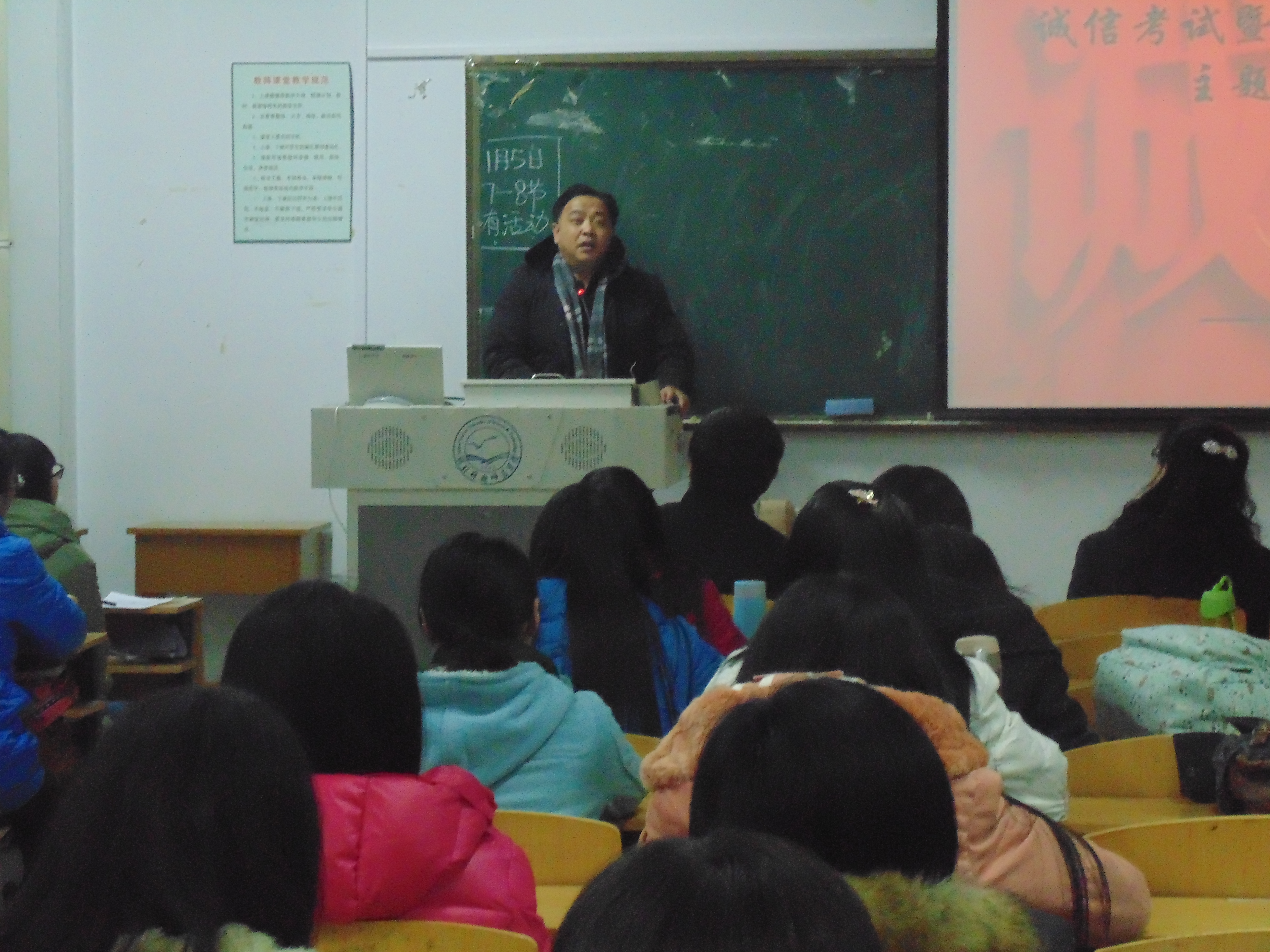为了落实和响应学校关于开展“三风”专项建设和老员工文明养成主题教育实践活动的号召,充分发挥员工在学风考风建设和文明养成活动中的主体作用,在期末考试即将来临之际,英国上市公司365英语本科1403、1404班于1月5日在开发区校区综合楼711教室召开诚信考试暨申请无人监考班主题教育班会。公司党委书记白雪松、经理邵丽君、学工办老师、校区员工组织代表等师生参加了班会。