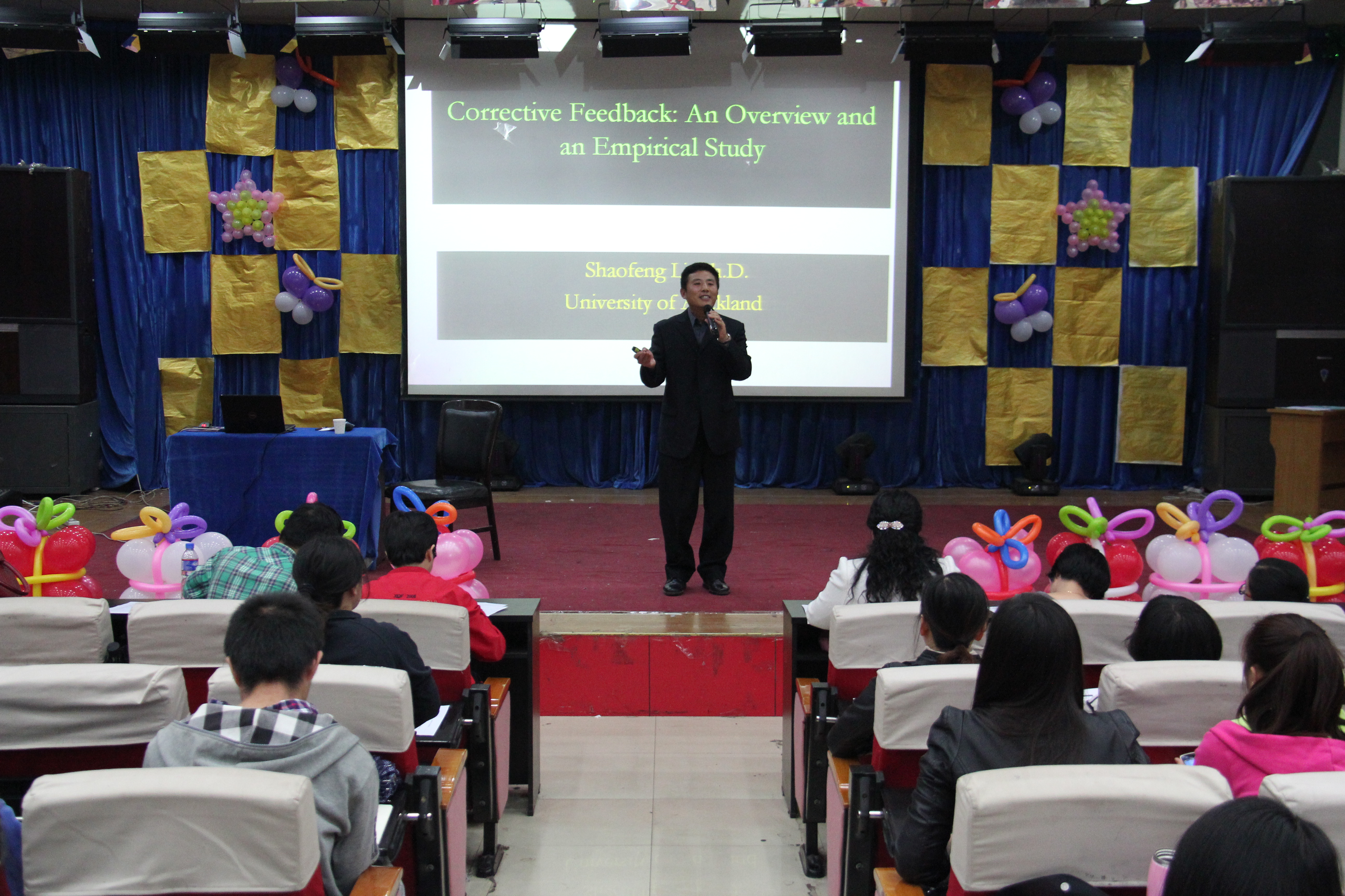 2015年5月8日下午,应英国上市公司365邀请,新西兰奥克兰大学语言学院副教授,新西兰应用语言学学会常务理事李少峰在公司开发区校区报告厅为公司师生做了一场题为《二语习得中的纠正性反馈》的学术报告。英国上市公司365师生共400余人听取了报告。报告会由英国上市公司365经理邵丽君主持。