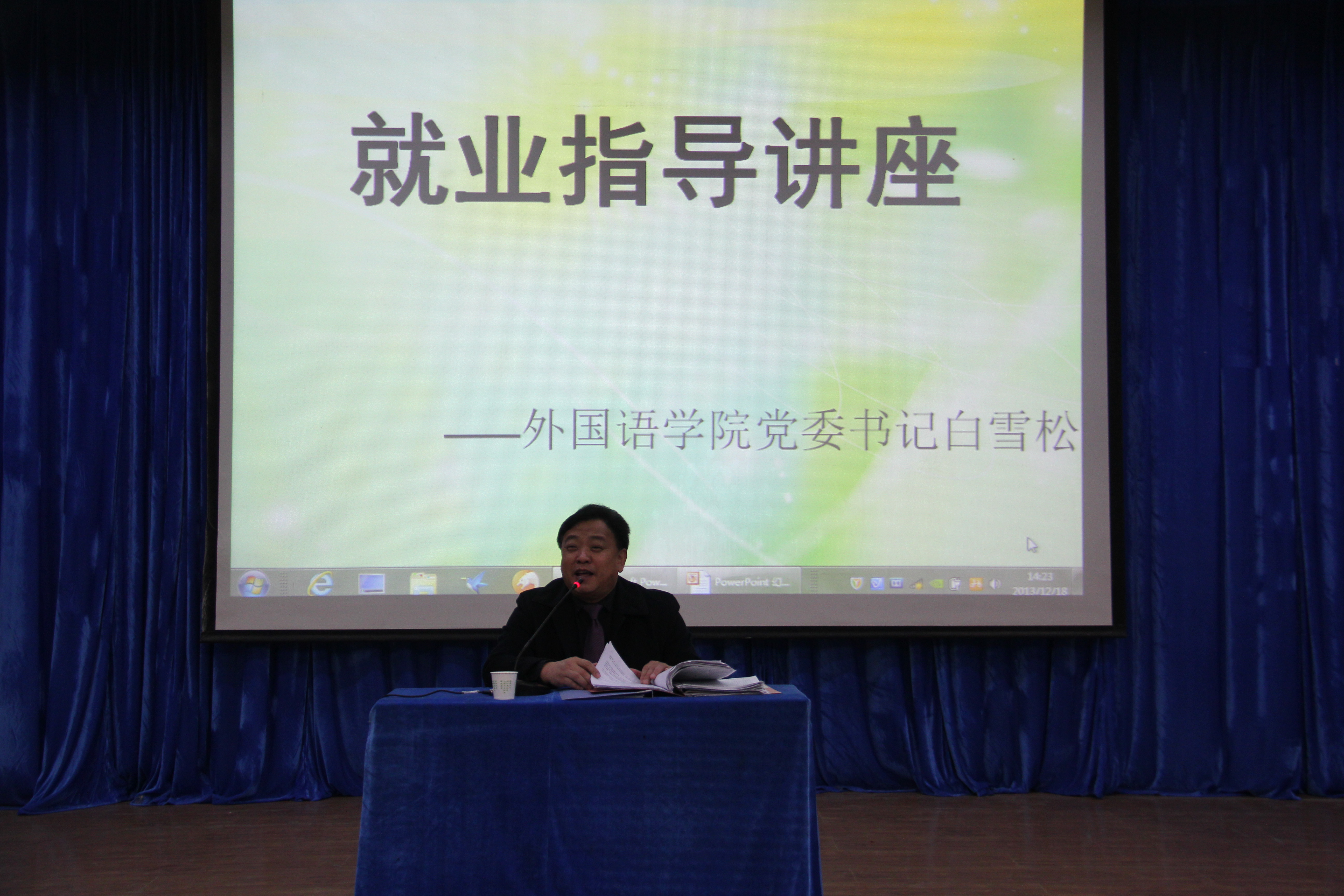 2013年12月18日下午两点,英国365集团网站公司党委书记白雪松老师在二楼报告厅给全体毕业生做了一场以“2014届毕业生就业形势分析”为主题的讲座。班级辅导员以及学工办各位老师参加了本次讲座。
