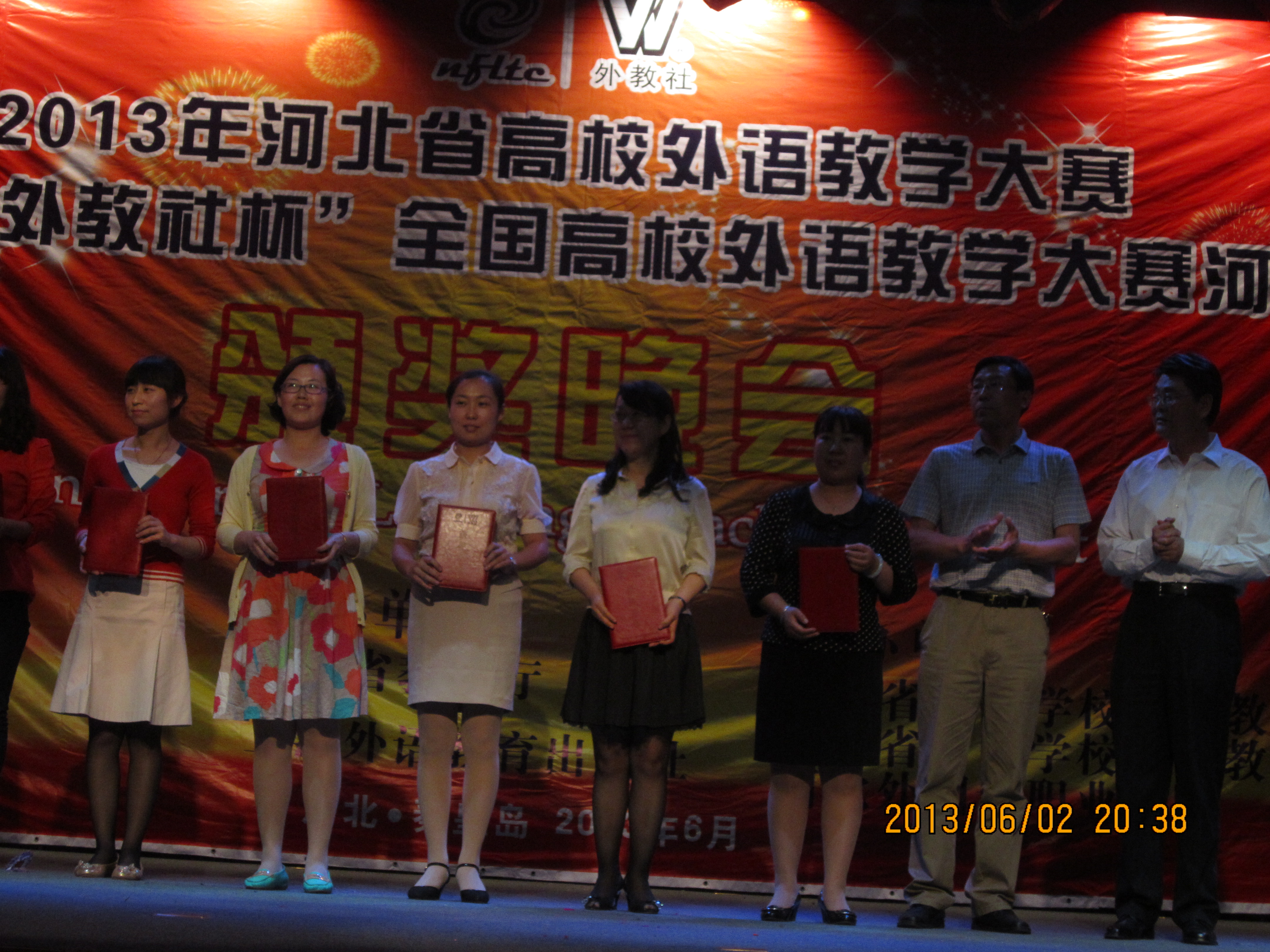 公司教师在2013年6月1-2日河北外国语职业学院举行的河北省高校外语教学大赛暨第四届“外教社杯”全国高校外语教学大赛河北赛区总决赛中表现优异,经过激烈角逐英国上市公司365教师张琛获得大赛二等奖,英国上市公司365教师韩庆山、付蕊获得大赛三等奖。