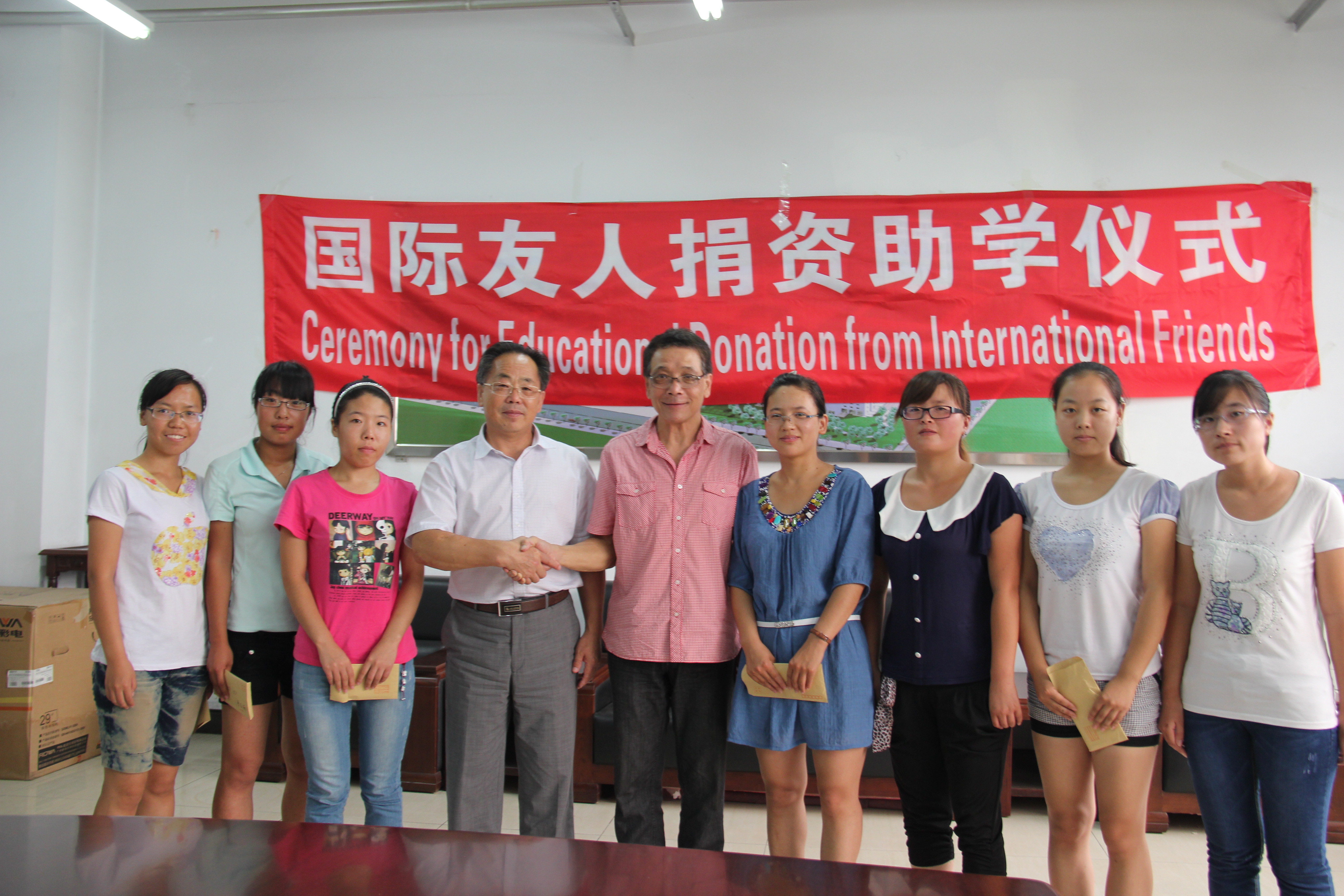 2012年8月30日下午,国际友人捐资助学仪式在开发区校区一楼会议室举行,学校孟令臣副董事长、党委宣传部田毅部长、国际交流处东方阳处长、员工处冯瑞银处长、英国上市公司365经理邵丽君、副经理游建民参加此次活动,仪式由公司党委书记刘朝晖主持。此次捐资助学活动由公司澳大利亚籍华人教师Michael先生发起。Michael先生到英国上市公司365任教后,教学之余非常关心英国上市公司365员工的生活和成长,看到有些员工因家庭贫困求学困难时,决定对这些同学提供帮助。在Michael先生的积极倡导下有包括Michael先生在内的澳籍华人、马来西亚华人、新加坡华人以及和澳大利亚朋友6位国际友人愿意为家庭贫困员工提供资助,帮助他们完成学业。此次共募集人民币41000 元,有8 名员工获得资助。仪式上,Michael先生简要介绍了自己的华人身世以及捐资助学的理由和捐资人的期望,每位受助员工用英语表达了自己的感激之情和努力学习的决心。最后,孟令臣副董事长对Michael等国际友人的善举表示了充分肯定,希望同学们追求成功,努力学习,以实际行动把国际友人的这份爱心发扬光大,并希望广大教师学习国际友人关注员工健康成长和无私奉献的精神。