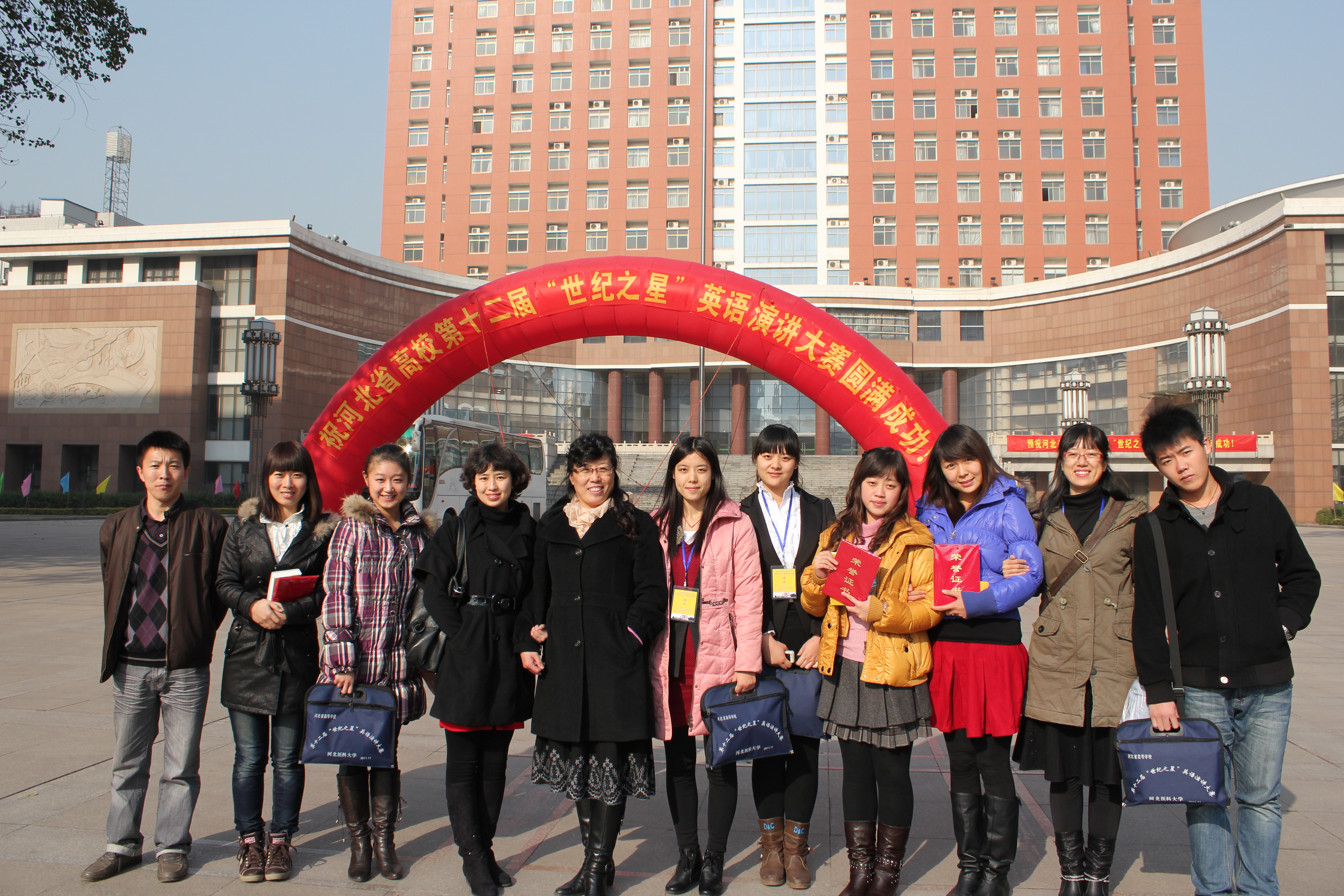2011年11月18日至20日,河北省高等学校第十二届“世纪之星”英语演讲大赛在河北医科大学举行,全省169所院校369名选手参加了此次比赛。大赛共分英语专业员工组、非英语专业员工组、高职高专员工组和青年英语教师组。公司共派出了8名员工和2名教师参赛。决赛中,英国上市公司365吴贺平老师及边丹丹老师语言流畅、应变自如,表现出扎实的专业功底,在全省80余名青年教师中脱颖而出,分别获得一等奖和二等奖。英语本科闻双同学语音语调优美、文化知识丰厚,荣获英语专业员工组一等奖;应用英语专业王亚飞同学语言流利、表述清晰,获得高职高专员工组一等奖。另外还有6名同学分获各个组别的三等奖。师生在比赛中成绩显著,再次为公司赢得了荣誉。