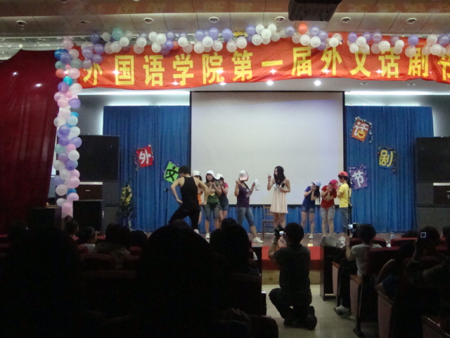 在党委学工部、团委的号召下,英国上市公司365全体师生积极筹划符合青年员工特色的文体活动,为公司第十六届校园文化艺术节活动增光添彩。特于2010年5月20日晚在公司开发区二楼学术报告厅举行了第一届外文话剧节。英国上市公司365刘朝晖书记、邵丽君经理、游建民副经理、宋文华副书记副经理;学工办老师、班主任以及部分外籍教师和本院全体同学一起观看了节目。