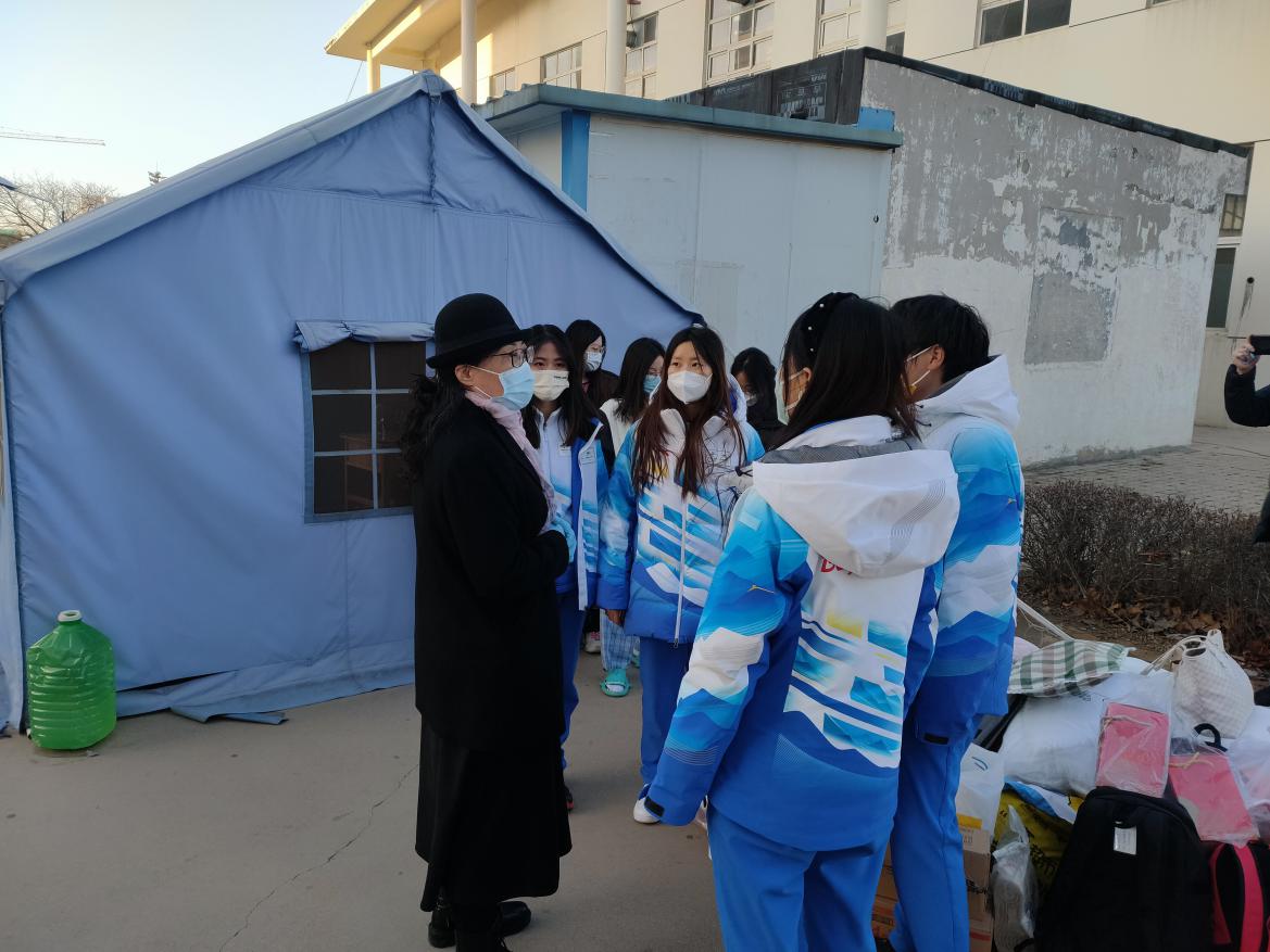 公司党委书记邵丽君携值班老师和李建红副处长一起早早地等在学校门口,怀揣着激动的心情期待志愿者们的到来。下午5时许,载着志愿者的大巴车缓缓开进校园,在场迎接的师生为“小英雄”们激动地欢呼:“欢迎回家,你们辛苦啦。”邵书记代表学院深深地表达了作为老师、作为长辈关切孩子们的心情。邵书记说道:“学校为大家在冬奥期间的付出感到骄傲,希望你们在今后的人生中继续努力,发扬奉献精神,为学校争光,为祖国争光。”老师们和在校员工贴心地接过志愿者手中的大包小包,帮他们将行李送到宿舍。